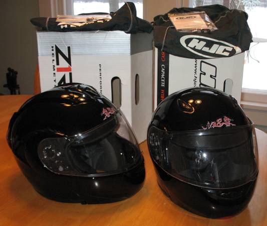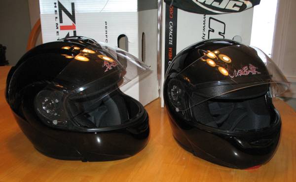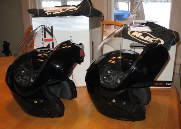 Pair of gently used modular motorcycle helmets for $275.00.