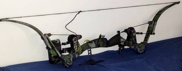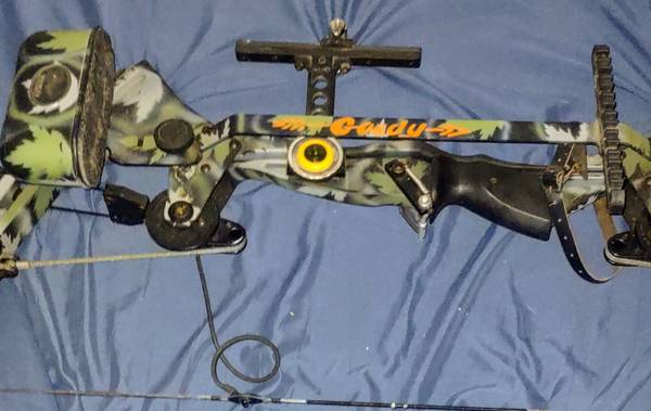 An Oneida Eagle "Strike Eagle" compound bow. My father purchased this brand new (probably around 1990). He hunted with it and shot it competitively (he won some trophies with it, too). It was his baby. It was very well maintained and has been mostly stored in a closet since being retired years ago. I do take it out from time to time just to shoot it. It will be very difficult to part with, but we have no space or use for it anymore. It's in very good condition, and it's very fast as it was just about the fastest bow on the market at the time. I know this is a well-functioning bow, and probably a valuable collector's item, but am not sure of its actual value. Therefore, I will consider all serious offers. Thank you
