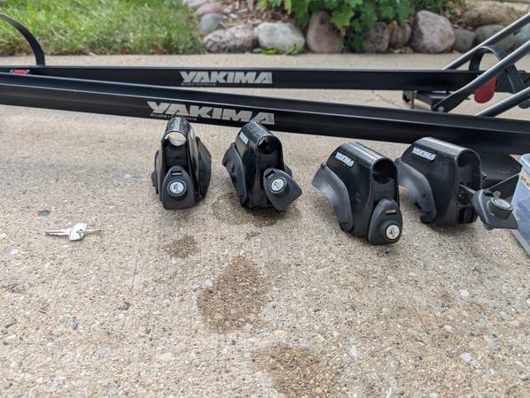 Selling a Yakima setup for carrying bikes on your car's roof. All parts are in good condition and ready to use.