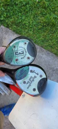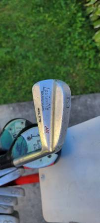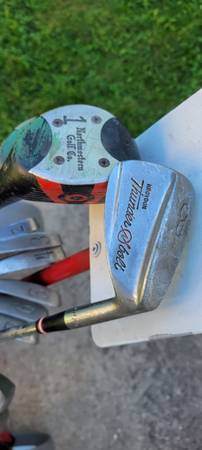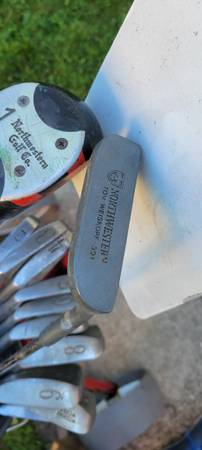 Mens golf club set. 1 & 3 woods and putter are Northwestern golf co. Irons are mostly Kroydon Thunder Bolt. Louisville Grand Slam 2 iron and putter. Bag and bag cart (as seen in photos) included.
