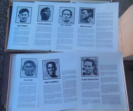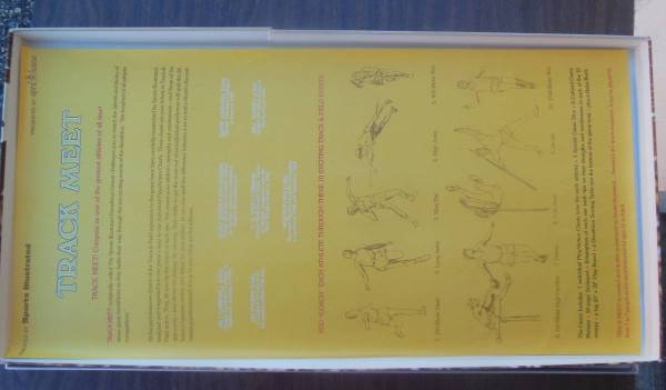Description: This Sports Illustrated game is a simulation of the Olympic Decathlon. You compete as one of 7 real medal winning decathletes: Jim Thorpe, Bob Matthias, Vasily Kuznetsov, Milt Campbell, Rafer Johnson, CK Yang, Bill Toomey. A fictional 8th player is a composite athlete composed of the best performance of each event from these 7 athletes. Each event is simulated by rolling 3 special dice to generate a number which is used to read a result on a table for each athlete. Some events allow a choice of trying an average attempt, a safe attempt, or going all out (which increase the risks of fouling or injuries). In events like the high jump and pole vault, the more attempts made the greater chance of fatigue. Injuries and fatigue affect the results of later events. Each event is converted to the standard scoring table for the decathlon. Also known as Decathlon.
