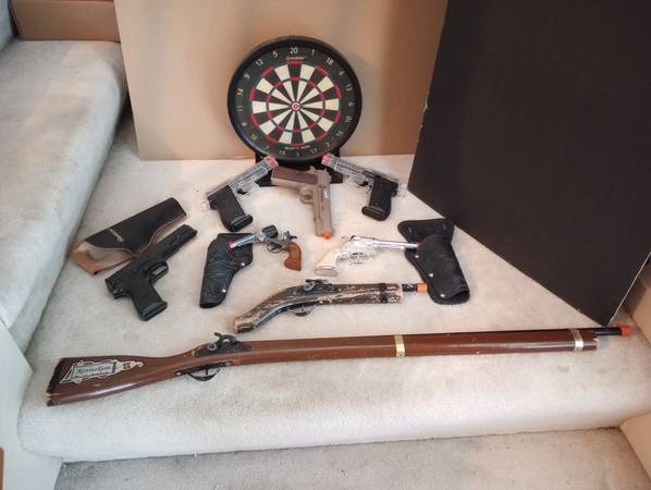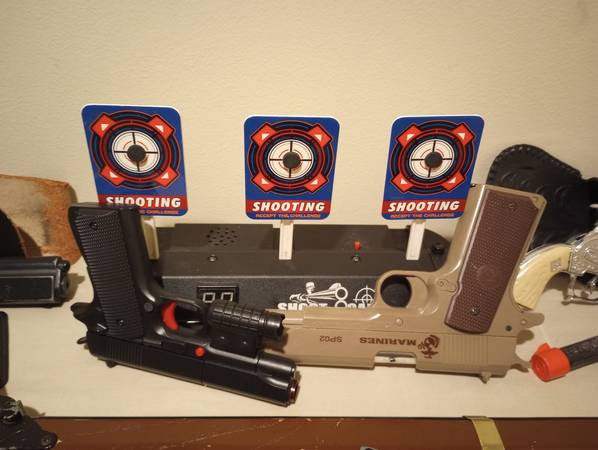 Vintage toy guns w/ holsters and airsoft target. If ad is showing they're available. Reply with phone number if serious. No texting please.