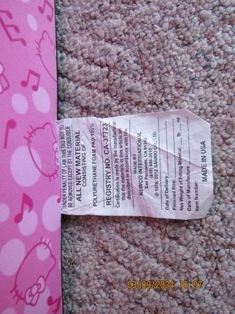 Hello Kitty 2 in 1 Flip-Open Foam Kids Sofa folds out from a sofa to a bed. Has removable cover for washing. Soft foam pad is made of 100% polyurethane. Sofa seat is 6" high and 10" deep.