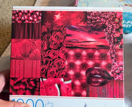 1 Big Ben 1000 piece puzzle titled Reds. Very pretty collaboration of different red items.