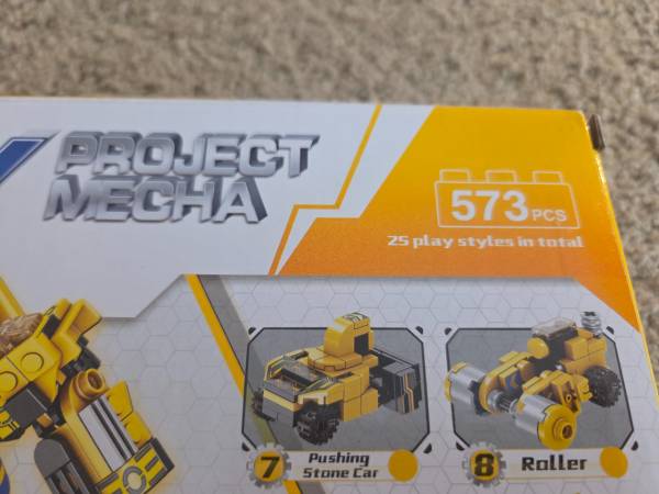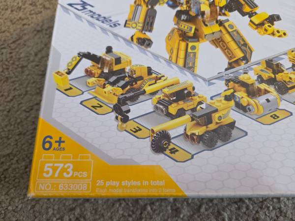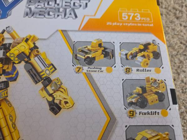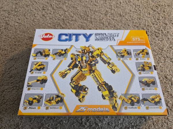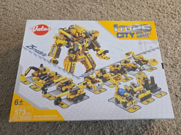 New in the box, never opened. This is a Vatos Stem building set for ages 6 plus. It has 573 pieces and 25 play styles. It's bright yellow and very cool. Builder can make a roller, forklift, crane, robot mech, mixer and more. Great gift for any builder.
