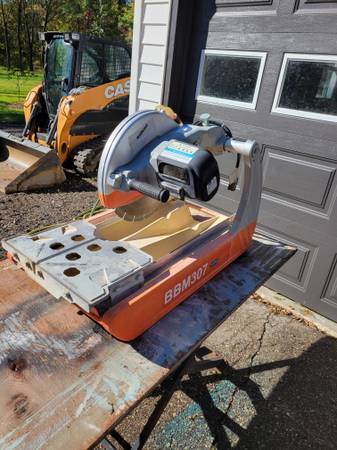 Very nice used Norton BBM 307 Clipper brick saw.. saw has approximately 60 hours of use on it since new this is the third new blade installed of which this one has two hours of use.. comes with everything seen in pics including water pump Etc.. show contact info