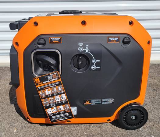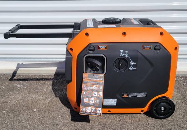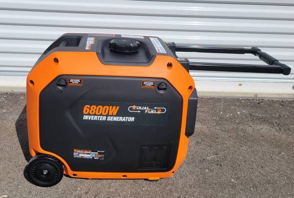 I have a brand new in the box Wen DF680iX Dual Fuel 6800-watt inverter generator. This generator can produce 240v or 120v and can run on gasoline or propane. It has an electric start and comes with a 6 ft propane line with regulator. Comes with oil, funnel, tool kit and owner's manual. This generator weighs 94 lbs. and is 22.8 in. x 16.6 in. x 19.7 in. The 240V configuration provides low-power Level 2 charging for battery and hybrid electric vehicles. Includes fuel shut-off to help limit maintenance, onboard wheels, a telescoping pull handle, one L14-30R 120V/240V receptacle, two three-prong 120V receptacles, one TT-30R RV receptacle, one 12V DC receptacle, two 5V USB ports, a voltage selector switch, a tool-free LPG quick-connector for the LPG regulator hose.