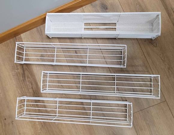 We have four brand new Airstream pantry baskets for sale. These measure 21.5 inches long, 4 inches wide and 3 inches tall. White in color. $150 if picked up, $170 shipped.