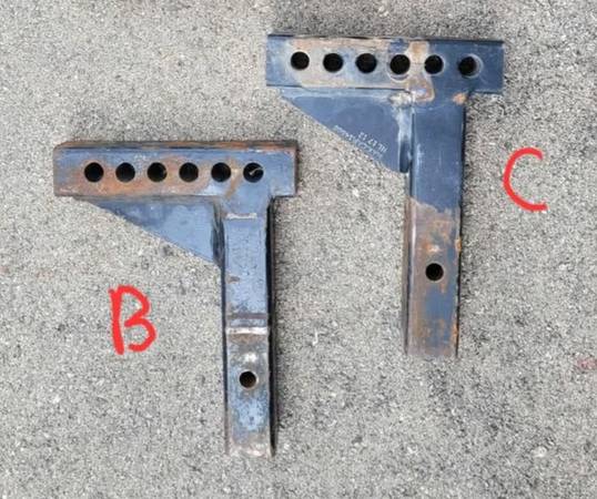 I have two different weight distribution hitch shanks. Both are for a 2" receiver hitches. I have more pictures of measurements between holes upon request. $35 each.