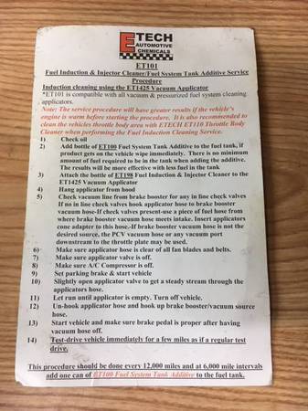 Like new, was only used twice. Includes 2 bottles of ET198 Fuel Induction and Injector Cleaner This is what you use before removing spark plugs in a Ford 5.4 engine Helps with removal Can be used on...