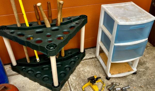 Rubbermaid garden tool storage rack ...or choose other shed items - $15 (2762 highway N Cottage Grove)