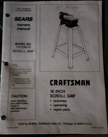 Craftsman 16” Scroll Saw, with extra blades, $40 OBO