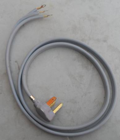 220 VOLT POWER CORD: Six foot standard 125/250 volt 30A power card labeled for range and dryer, No, J86938058. GE Brand. On wire 890165-0 (UL) SRDT 3X5.26mm squared (10 AWG) 60 DEGREES C VW-1 WELL SHIN. Never used.