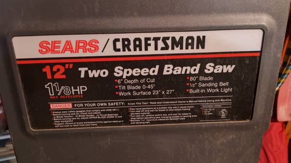Sears craftsman 12" two speed band saw. Tilt head, Large table, wide base, works well.