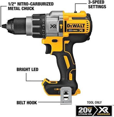 The DCD998 Hammer Drill has 3-speeds, high performance, all-metal transmission to optimize tool-to-task for fast application speeds and improved run-time for drilling in masonry materials