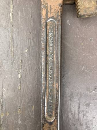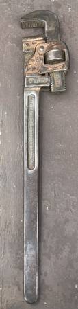 Three vintage steel pipe wrenches. All 24". One Ridgid, two Trimont. One for $40, two for $75, all three for $100 obo