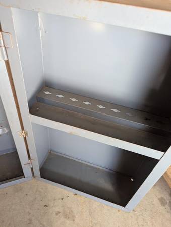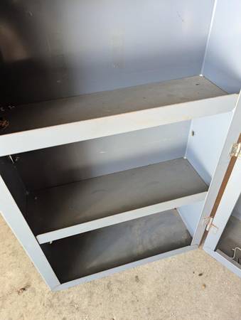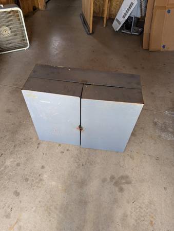 Solid garage cabinet as pictured. $40.00 cash. Due to spam inquiries without a contact # will be ignored.