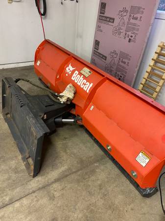 Bobcat 96" snow blade with hydraulic controlled angling. Shoes are not shown, but are included.