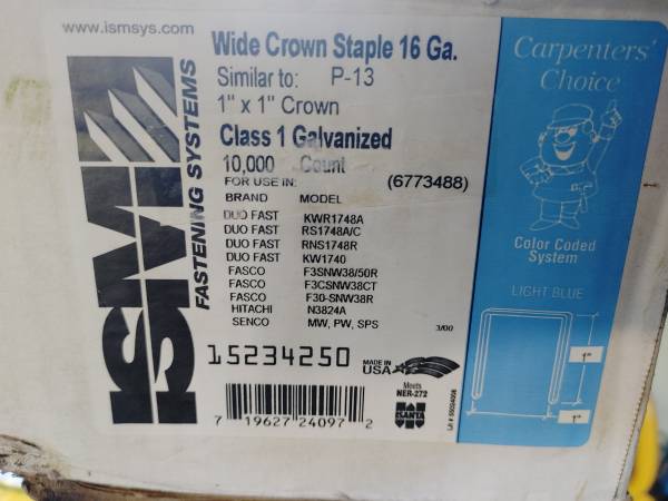 ISM Large Wide Crown Staples 1" X 1" Galvanized 16 ga. 7000 - $25 (Sauk City)