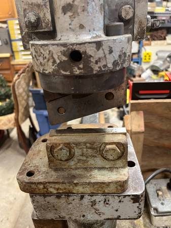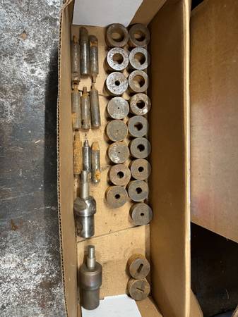 Manual C frame press/shear made in 1958. Includes shear setup and numerous punches and dies. Some of the dies have rust but wire brush clean as can be seen on other punches. Used as hobby tool for 25 years. Working condition.
