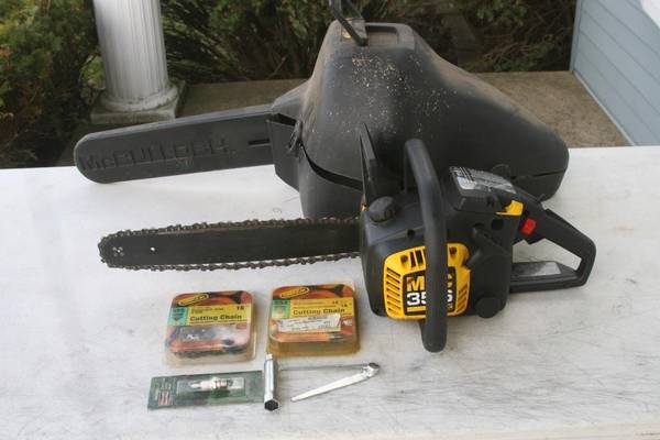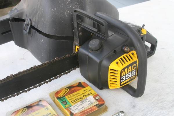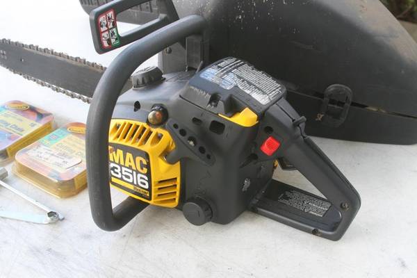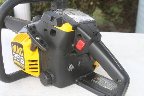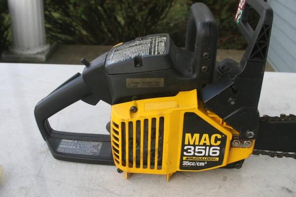 I have a very nice McCulloch 3516 chainsaw for sale. I bought this many years ago, replaced the fuel lines and bulb and then used it for a project or two. It has been sitting ever since. I did run/drain all the gas out of it before I stored it. It does turn over and has good compression. The fuel bulb is nice and soft so hopefully the fuel lines are also in good condition. Not sure what it will need to get running, maybe just gas (I don't have the right mix of gas to test it myself) and a new plug.