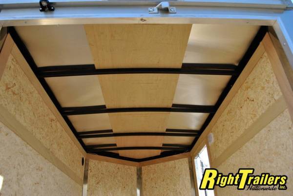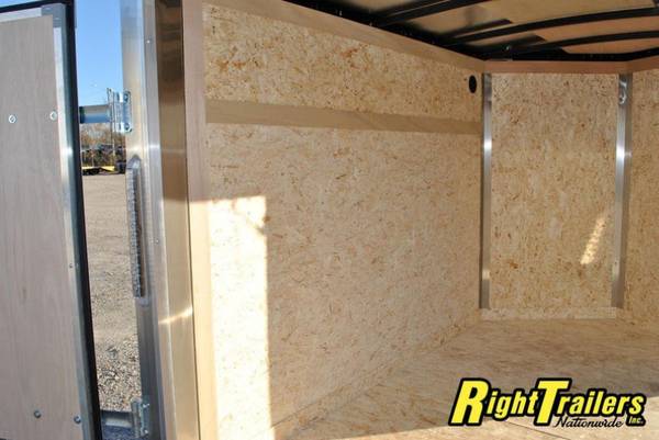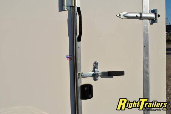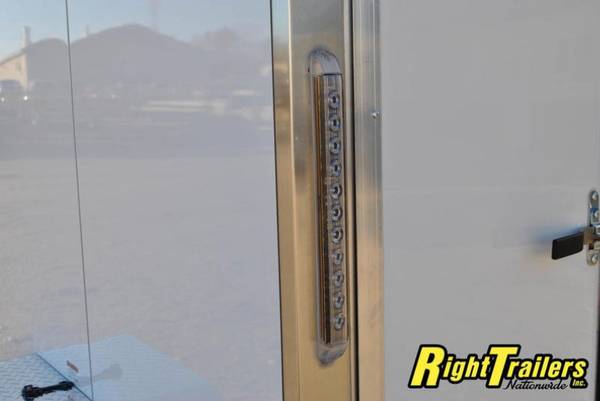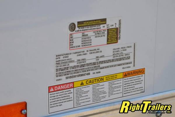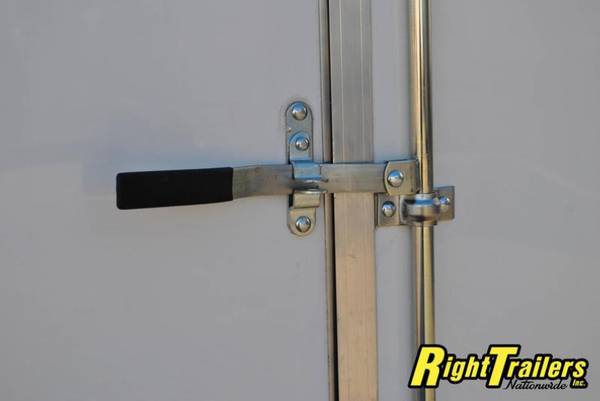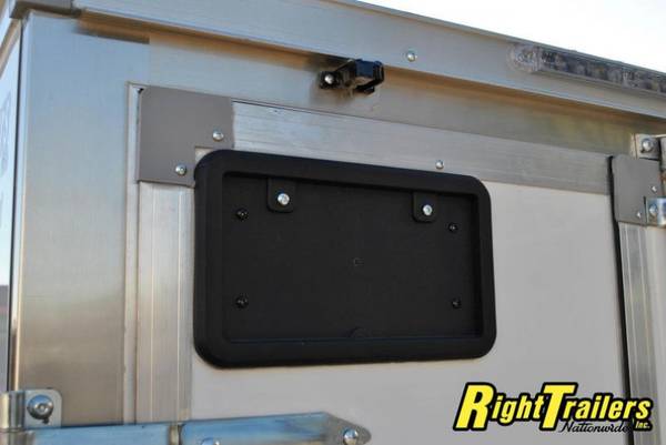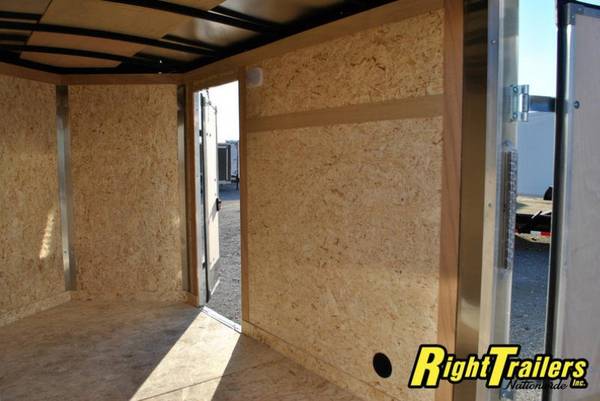 RC Trailer RDLX(REV24) - All steel frame, 5'6" interior height, 3/8" Engineered wood walls, 3/4" Engineered floor, REAR DOUBLE DOORS, 24" side Camlock door with flush lock, Lipert drop axle W/6yr warranty, ST225/75R15D, SMOOTH fenders, 24" ATP stone guard, (1) 12 volt interior lights, 8" rear kick out with loading lights w/wall switch, (4) D Rings, flow thru vents, all wheel electric brakes, 16 OC Floor & Wall, 18" WEDGE W/Slope nose, ONE PIECE ALUM ROOF, WHITE SCREWLESS 0.030 ALUMINUM EXTERIOR , 2090 MAX PAYLOAD