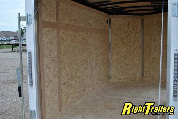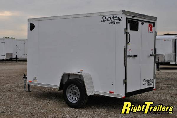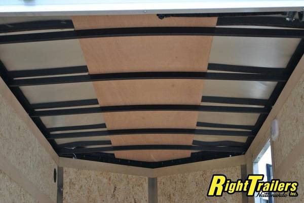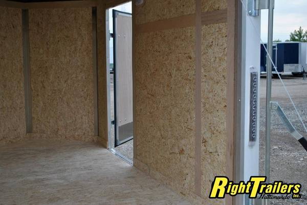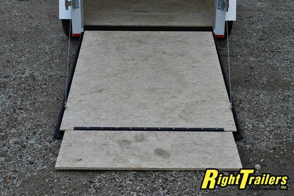 RC Trailer RDLX - All steel frame, 5'6" interior height, 3/8" Engineered wood walls, 3/4" Engineered floor, 1000# REAR RAMP DOOR, 24" side Camlock door with flush lock, Lippert drop axle W/6yr warranty, ST225/75R15D, ATP fenders, 24" ATP stone guard, (1) 12 volt interior lights, flow thru vents, all wheel electric brakes, 16 OC Floor & Wall, 18" WEDGE, ONE PIECE ALUM ROOF, WHITE SCREWLESS 0.030 ALUMINUM EXTERIOR , 1870 MAX PAYLOAD