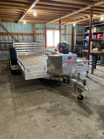 Aluma Utility Trailer - 2023 78" x 14' 7000 lb 4' Fold Gate with easy Lift 2-Brake Axles Radial Tires Side Rack Tie Downs Spare Tire with mounting bracket Storage Box $8,600 Jim (608) - five one six...