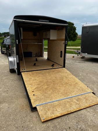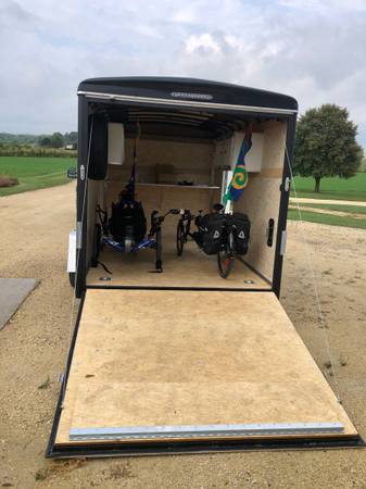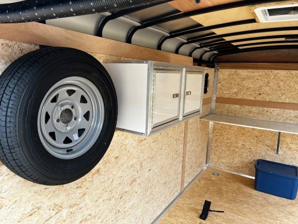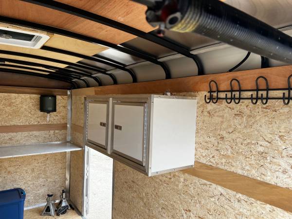 I have added the following upgrades. Raised the ceiling from the standard 6'0" height to 6'8" height. At 6'4" I don't like to bend over. Added a roof vent and two side vents which help dramatically with air flow cooling. The spare is carried inside on a wall mount. I also added a cabinet on both sides of the trailer along with a work station across the entire front of the nose of the trailer. This has come in handier than I thought. There are two interior light upgrades. A significant upgrade is the addition of the passenger side door for easy access if the trailer is full. There is also a pull out step at the side door to make stepping into the trailer very easy.
