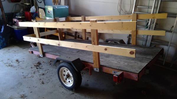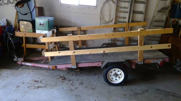 Pretty much "as pictured". The bearings were re-packed about 100 miles ago. Tires are fine. Has lived unmoved in my garage for a year but in past it did have a year or two in the weather, so the plywood floor surface is weathered. Last time I used it the lights worked fine but again, it's been sitting, and I no longer have a vehicle to test them with. $200 cash, PayPal, or Venmo.