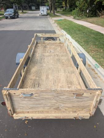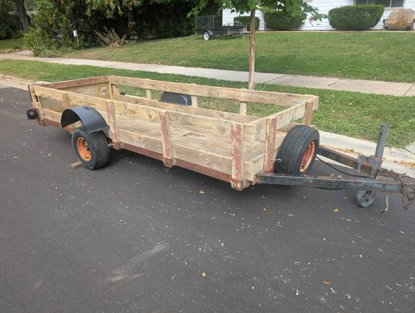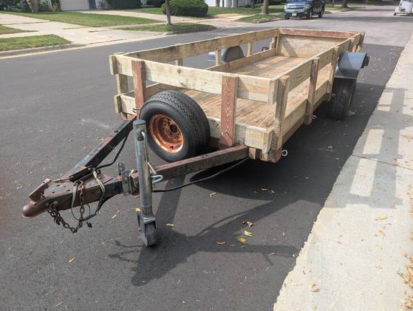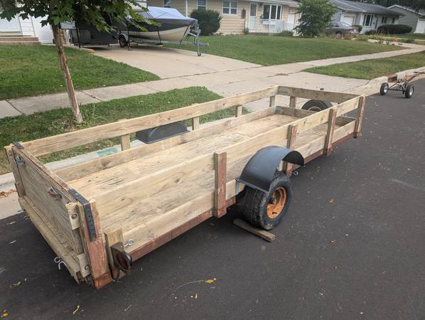 This heavy duty trailer with treated wood has double welded steel tubing reinforced trailer frame.