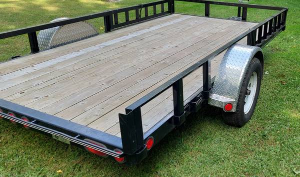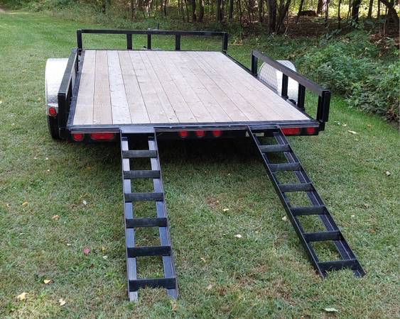 Selling my UTV / ATV / Utility trailer. 7712 size - inside clear dimensions are 77" wide x 12 feet long. 2,995 pound GVWR, 3,500 GAWR. Removeable side ramps for rear or side loading. The trailer overall is in great condition, it's spent most of it's life in a shed with minimal use. The wood deck is in excellent condition. Everything works good including the lights. It has two jacks on it - one with a foot plate and one with a wheel. 2" coupler and flat-4 electrical plug. Asking $2,200 cash. Meet in Portage, WI for a sale. Thanks.