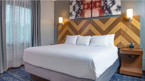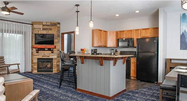 These four-bedroom resort suites comfortably sleep four to ten guests and measure between 900 to 1,519 square feet. Suites feature private bedrooms with one king bed in the master, two double beds or a king bed in the guest rooms and a queen sleeper sofa in the living area. You will appreciate a fully equipped kitchen, separate living/dining areas and a washer/dryer in each suite. Plus, unwind in the whirlpool tub, warm up by the fireplace on chilly nights and enjoy the stars from your private balcony.