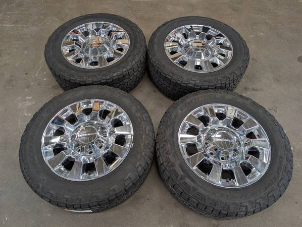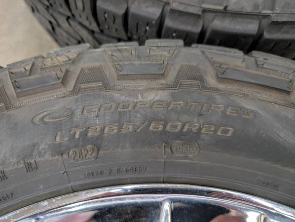 GMC 8 LUG 20" CHROME DENALI WHEELS WITH LT265/60R20 COOPER DISCOVERER at3 xly