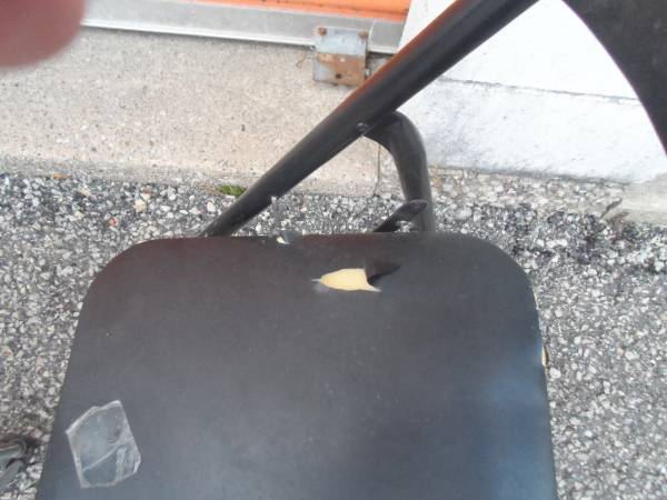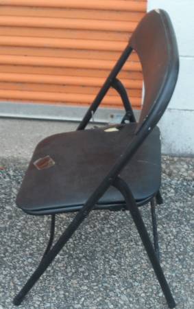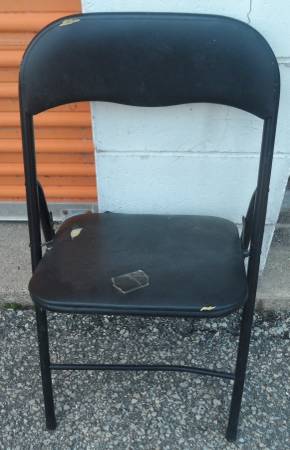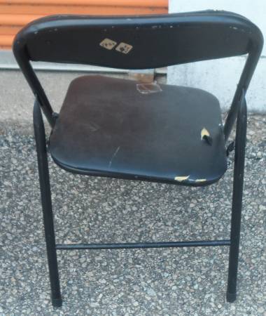 FOLDING CHAIR: A black metal chair needs repair. Fix, use for parts, free scrap metal, you pick. FREE.